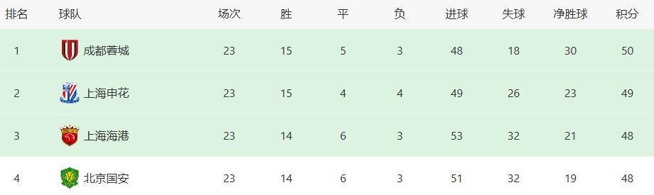 毫无疑问,这两场比赛的成果对本赛季中超争冠样式产生了首要影响。在本轮比赛前,上海申花、北京国安、上海海港和成齐蓉城积分旁边,争冠样式卓著胶著。而跟着上海申花和北京国安的同期掉链子,反而让自后居上的成齐蓉城坐稳了榜首之位,成了最大赢家。